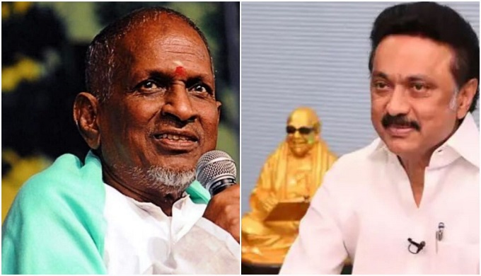 இசைஞானி இளையராஜாவுக்கு நினைவு பரிசு வழங்குகிறார் முதலமைச்சர் மு.க.ஸ்டாலின்