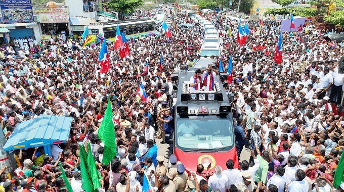 மீண்டும் அதிமுக அடிமை ஆட்சியை தமிழகத்தில் அமைய விடக்கூடாது, பிரதமர் மோடி அமித் ஷா ஆகியோர் தமிழ்நாட்டுக்கு வருகின்றனர், தமிழ்நாட்டுக்கு எதுவும் செய்யாத பாஜகவை தமிழகத்தில் இருந்து அப்புறப்படுத்த வேண்டும், அதிமுகவுக்கு போடப்படும் வாக்கு பாஜகவுக்கு போடும் வாக்கு. இது தமிழ்நாட்டுக்கும் டெல்லிக்கும் நடக்கக்கூடிய தேர்தல், மோடியா.? தமிழ்நாடா.? என பார்க்கக்கூடிய தேர்தல். ஒவ்வொரு முறையும் டெல்லியை ஓட ஓட விரட்டிக் கொண்டு இருக்கிறோம், மோடி அமித் ஷாவைக் கூட ஓட ஓட விரட்டி இருக்கிறோம்.